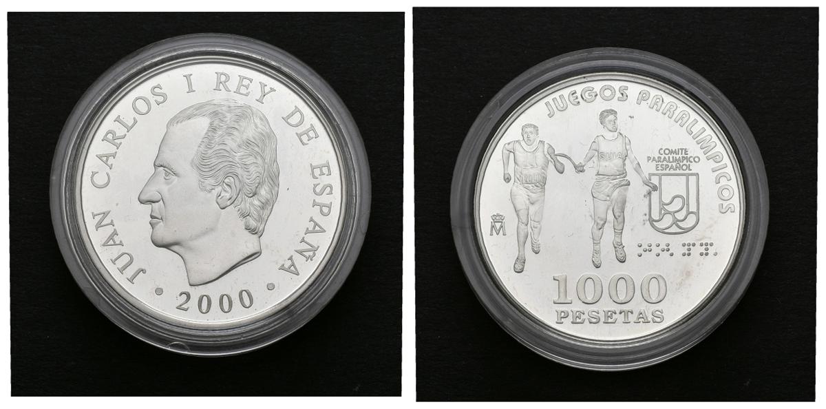 JUAN CARLOS I. 1000 Pesetas. (Ar. 13,50g/33mm). 2000. "ATLETISMO PARA CIEGOS". Presentada en estuche oficial con certificado. PROOF.