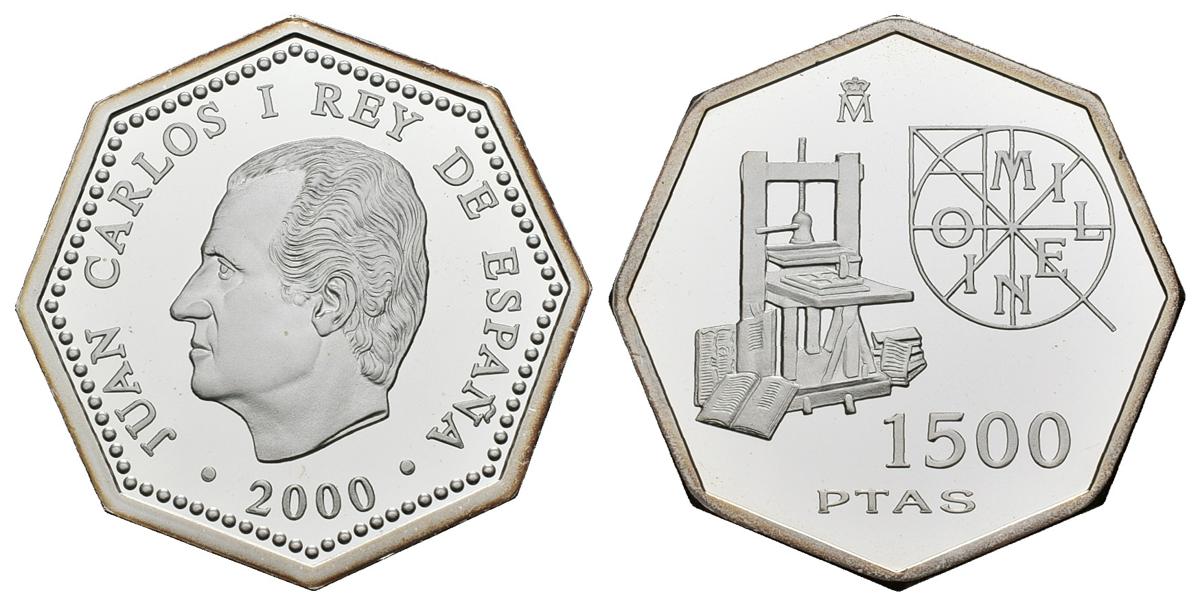 JUAN CARLOS I. 1500 Pesetas. (Ar. 20,00g/31mm). 2000. "MILENIO IMPRENTA". Presentada en estuche oficial con certificado. PROOF.
