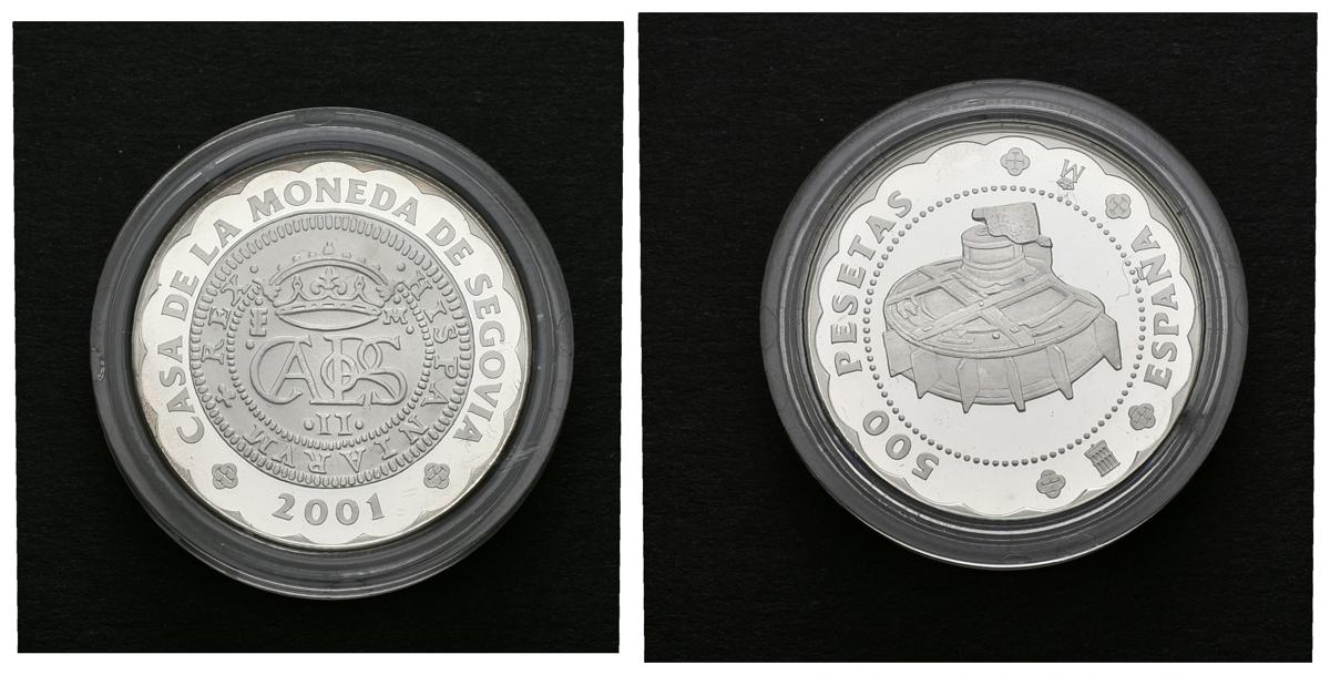 JUAN CARLOS I. 500 Pesetas. (Ar. 6,75g/27mm). 2001. "CASA DE LA MONEDA DE SEGOVIA". Presentada en estuche oficial con certificado. PROOF.