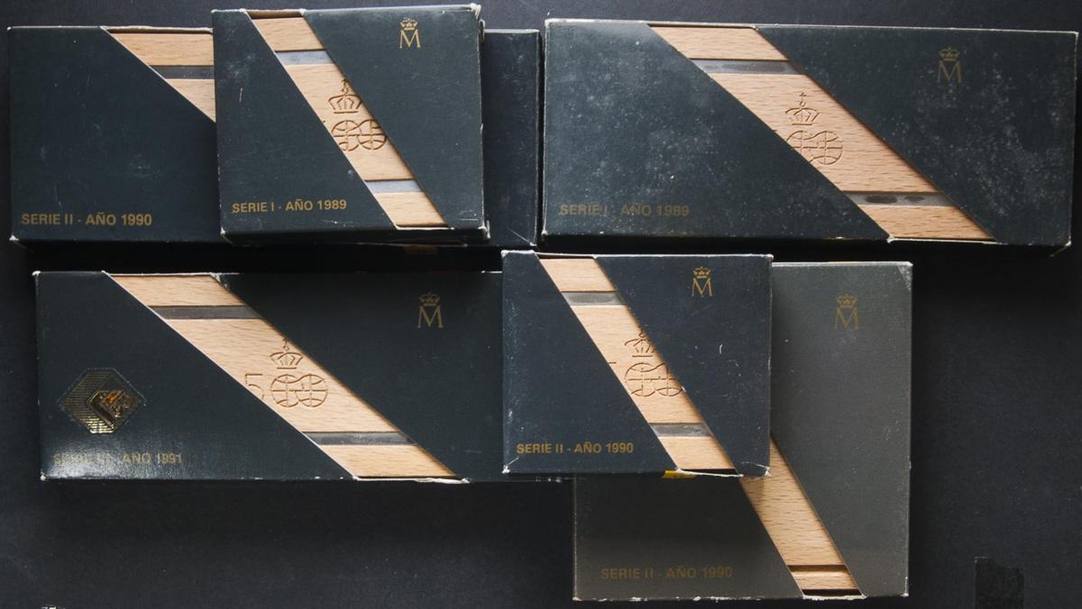 JUAN CARLOS I. Conjunto de 18 monedas compuesto por 1 moneda de 10000 Pesetas, 2 de 5000 Pesetas y 3 series con los valores: 100, 200, 500, 1000 y 2000 Pesetas. Ar. PROOF. Presentadas en estuches oficiales y con certificados.