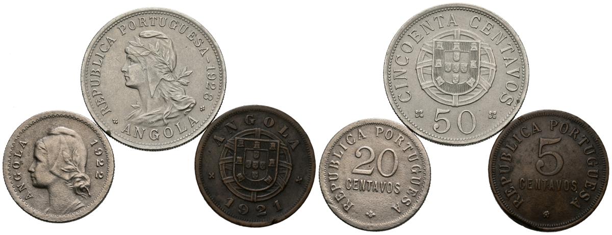 ANGOLA. Conjunto de 3 monedas de 5, 20 y 50 centavos de los años 1921, 1922 y 1928. Diferentes estados de conservación. A EXAMINAR.