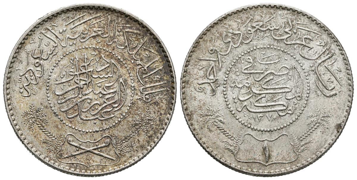ARABIA SAUDITA. 1 Riyal. (Ar. 11,65g/30mm). 1370H. (1950). (Km#18). MBC+.