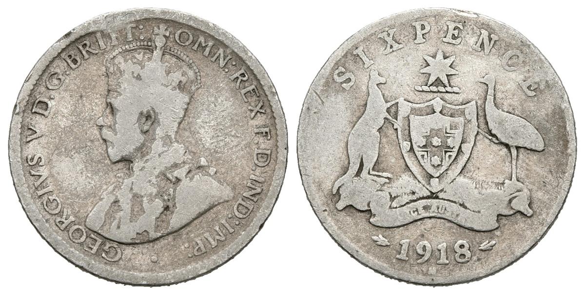 AUSTRALIA. 6 Pence. (Ar. 2,69g/19mm). 1918. Melbourne M. (Km#25). BC+.