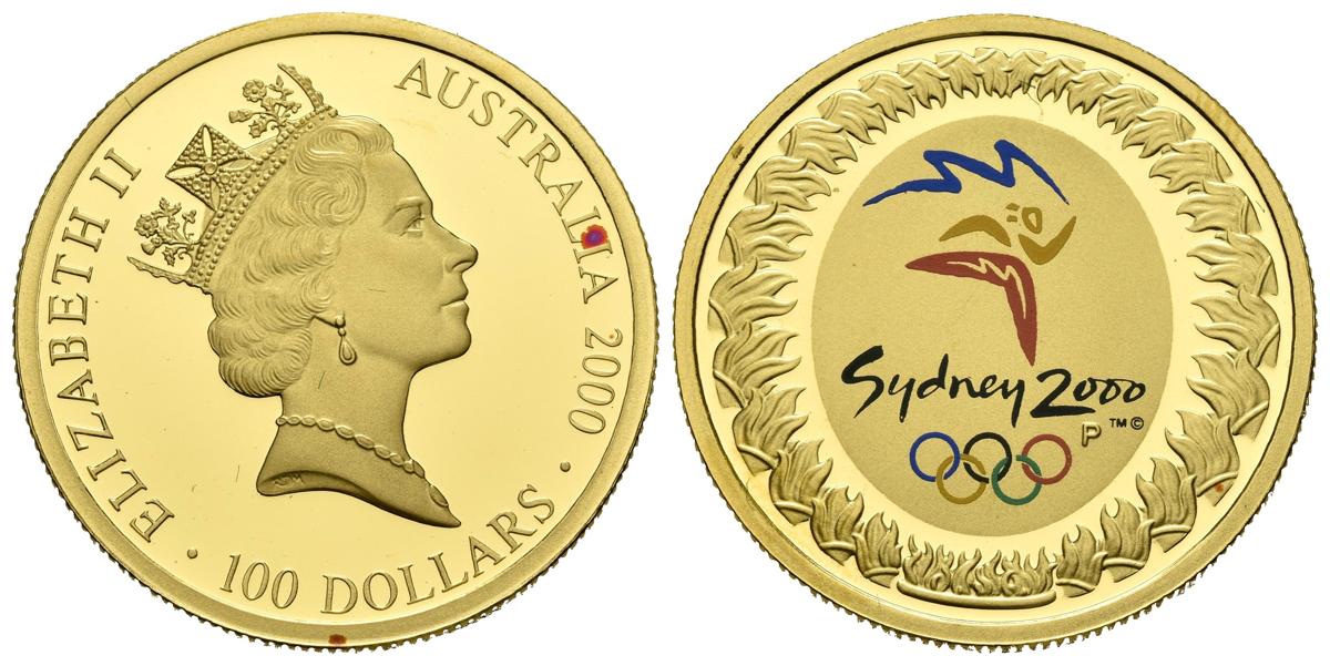 AUSTRALIA. 100 Dollars. (Au. 10,02g/25mm). 2000. "THE SIDNEY 2000 OLYMPIC GOLD COIN COLLECTION". Presentada en estuche oficial con certificado. PROOF.