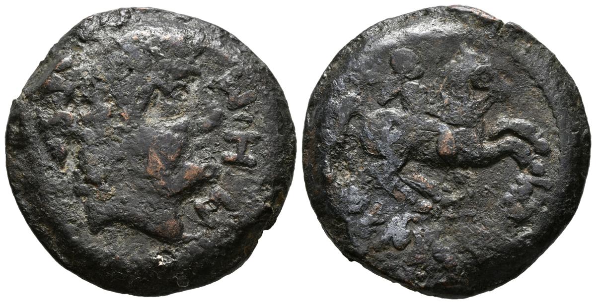 OILAUNICOS (Zona norte del Ebro). As. (Ae. 27,38g/33mm). 120-20 a.C. (FAB-1861 var). Variante: Serie muy pesada. BC/MBC-. Escasa.