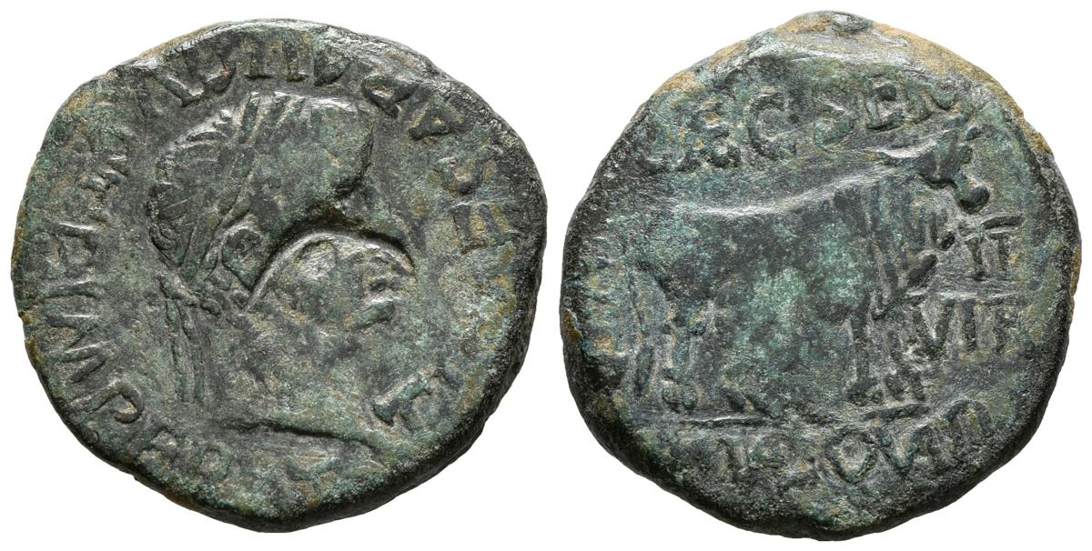 TURIASO (Tarazona, Zaragoza). As. (Ae. 12,12g/28mm). 14-36 d.C. (FAB-2451). Contramarca en anverso. MBC.