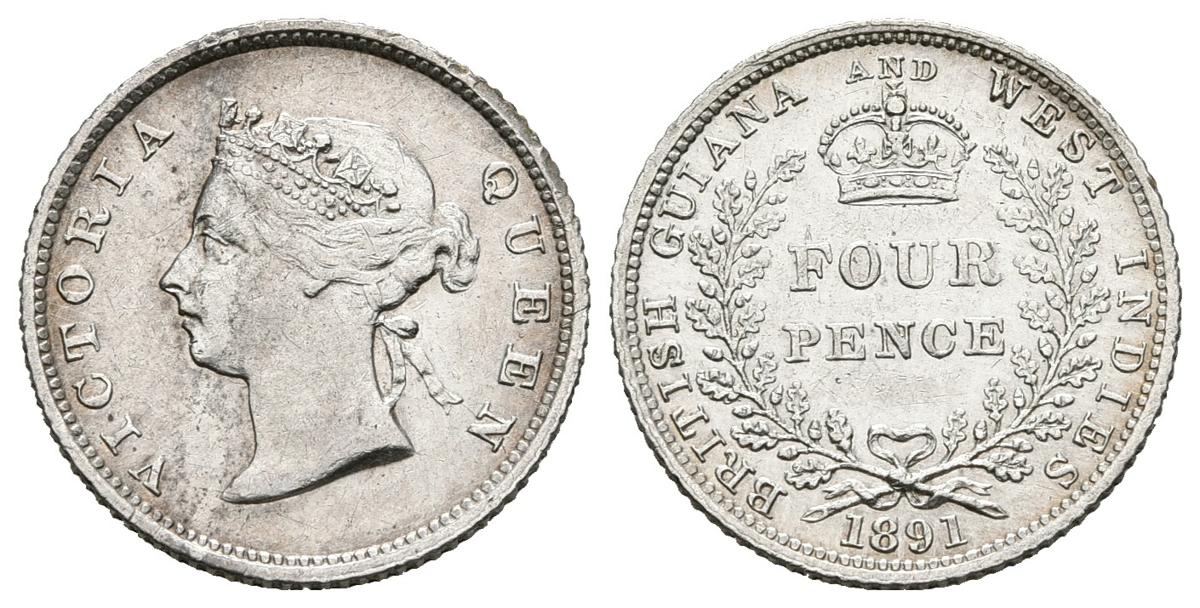 GUAYANA BRITANICA. 4 Pence. (Ar. 1,86g/16mm). 1891. (Km#26). EBC-.