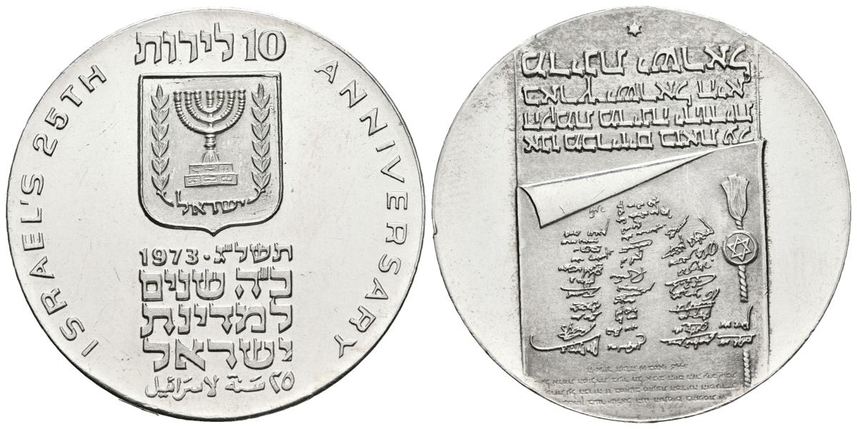 ISRAEL. 10 Lirot. (Ar. 26,04g/37mm). 1973. (Km#70.1). SC.