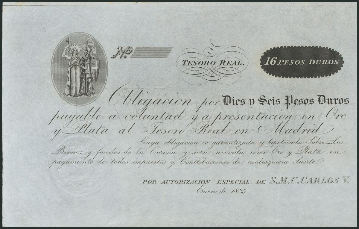 16 Pesos Duros. Enero 1835. (Edifil 2017: 19). EBC.