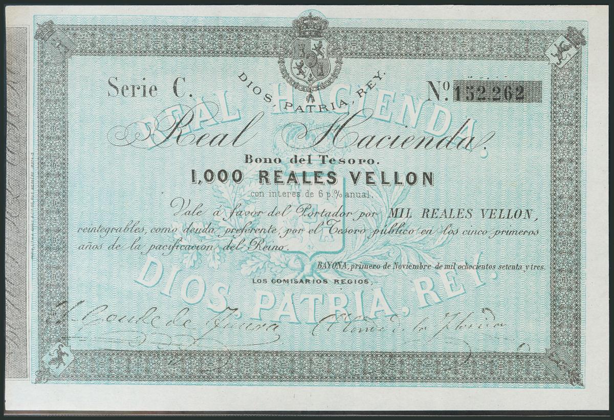 1000 Reales. 1 de Noviembre de 1873. Serie C. (Edifil 2017: 212). SC-.