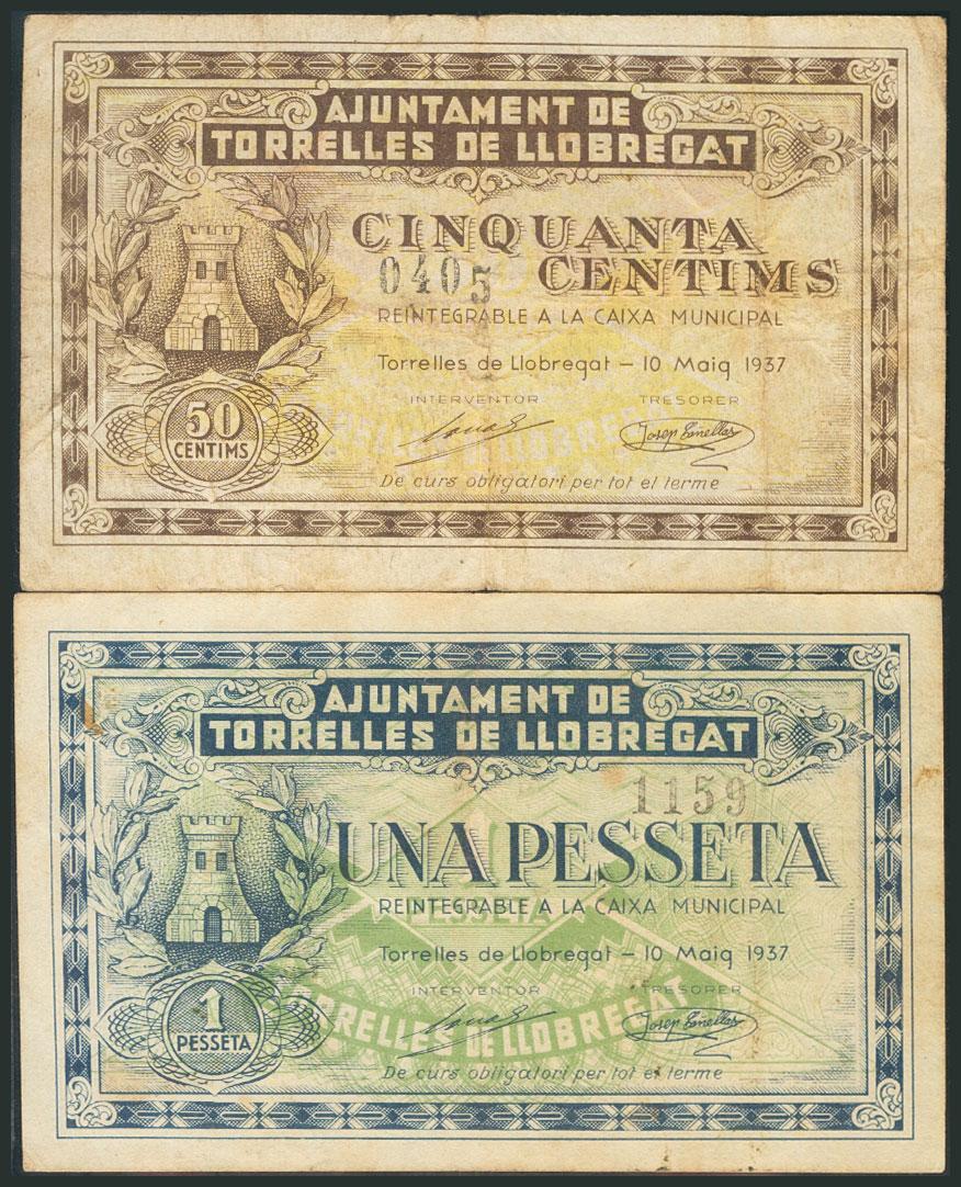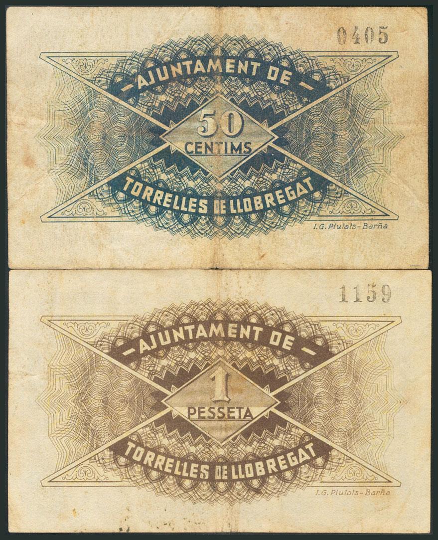 TORRELLES DE LLOGREBRAT (BARCELONA). 50 Céntimos y 1 Peseta. 10 de Abril de 1937. (González: 10380/81). MBC.