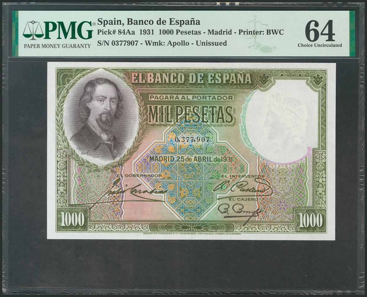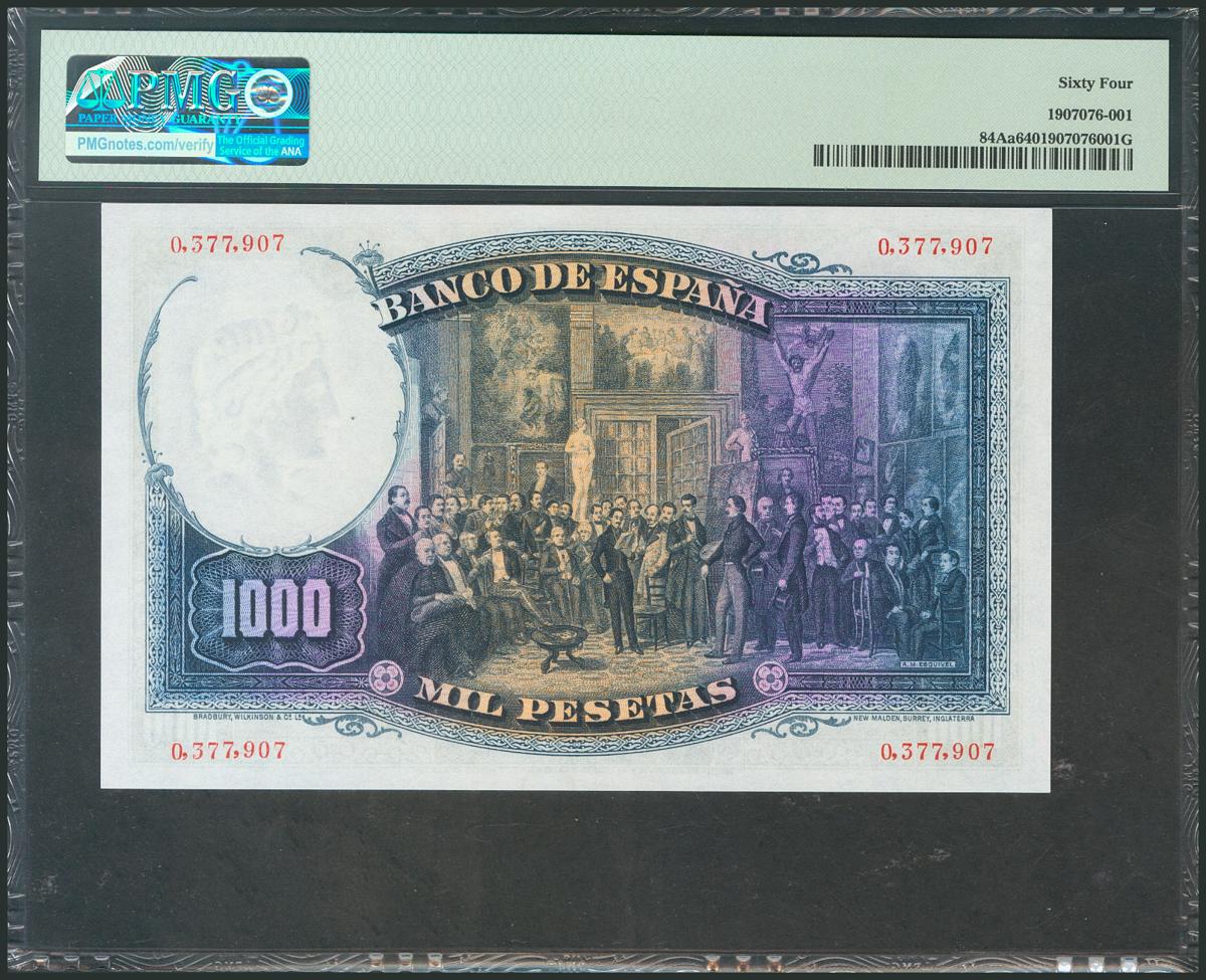 1000 Pesetas. 25 de Abril de 1931. Sin serie. (Edifil 2017: 362). SC. Encapsulado PMG64.