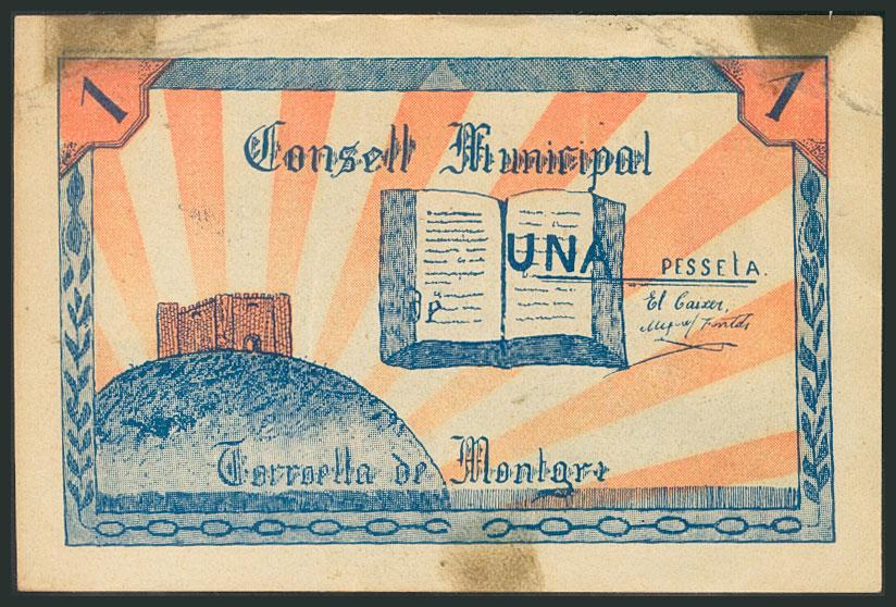 TORROELLA DE MONTGRI (GERONA). 1 Peseta. (1938ca). Serie D. (González: 10391). EBC.
