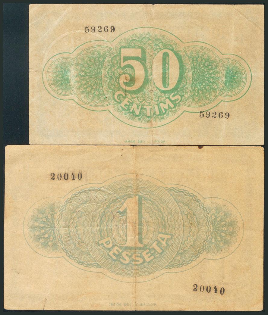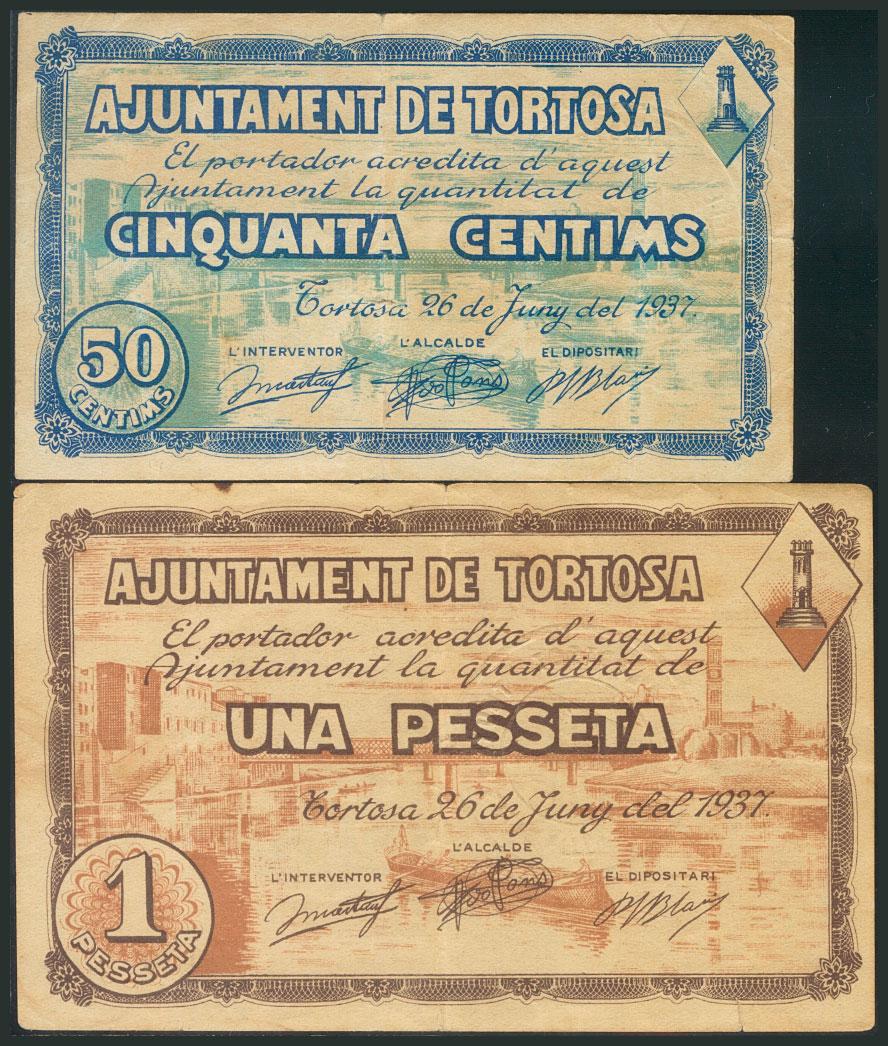 TORTOSA (TARRAGONA). 50 Céntimos y 1 Peseta. 26 de Junio de 1937. (González: 10408/09). MBC.