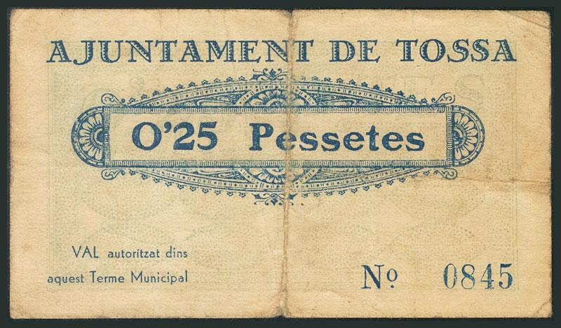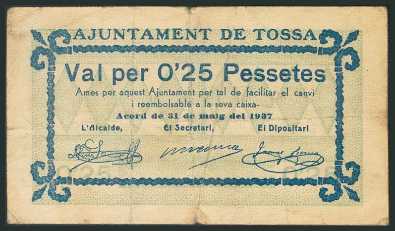 TOSSA (GERONA). 25 Céntimos. 31 de Mayo de 1937. (González: 10425). BC.