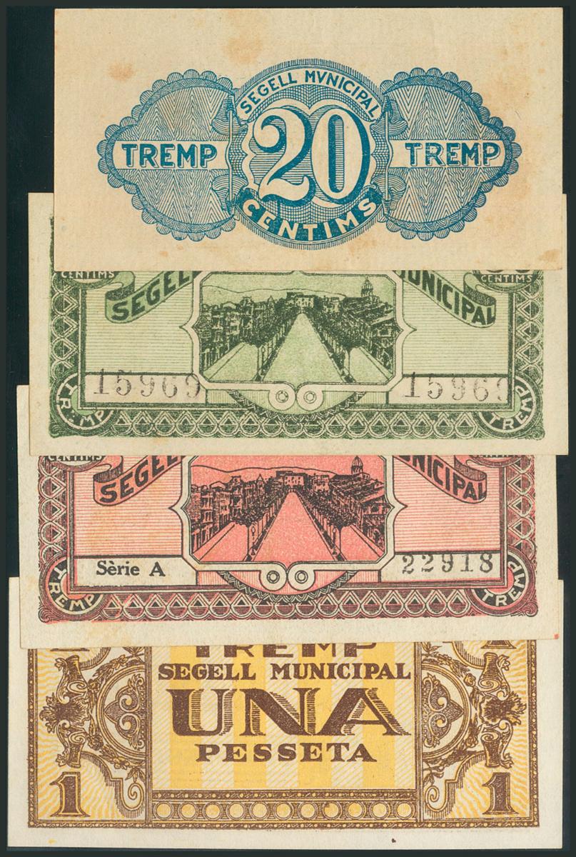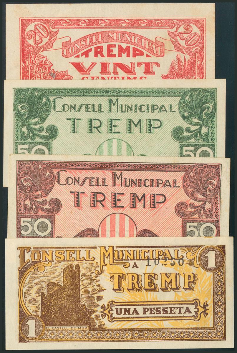 TREMP (LERIDA). 20 Céntimos, 50 Céntimos (2) y 1 Peseta. (1937ca). (González: 10439/42). EBC.