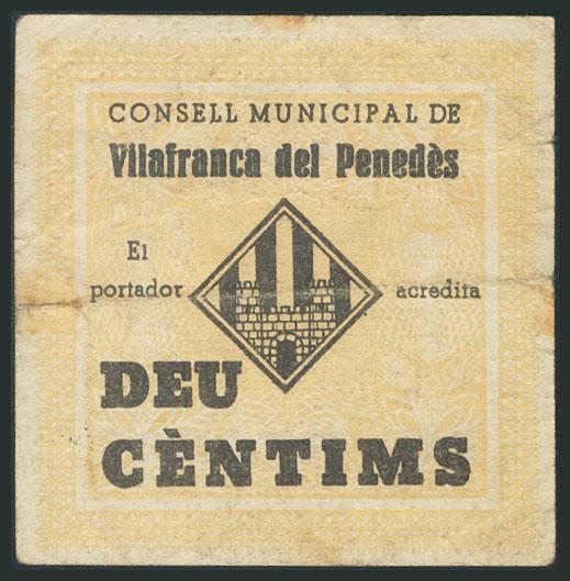 VILLAFRANCA DEL PENEDES (BARCELONA). 10 Céntimos. (1937ca). (González: 10710). MBC+.