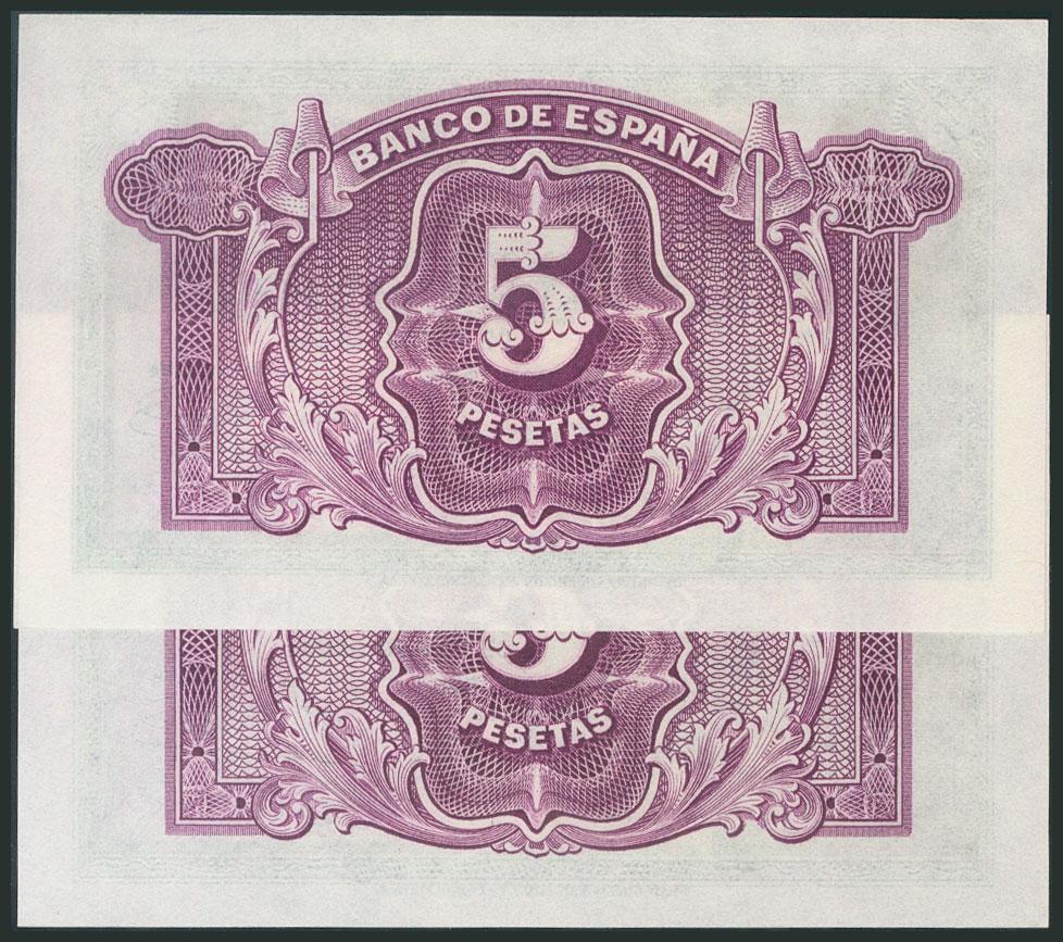 5 Pesetas. 1935. Pareja correlativa. Serie B. (Edifil 2017: 363a). Apresto original. SC.