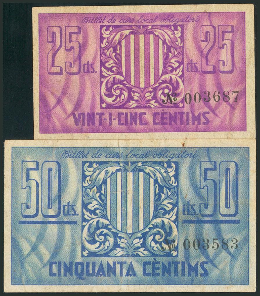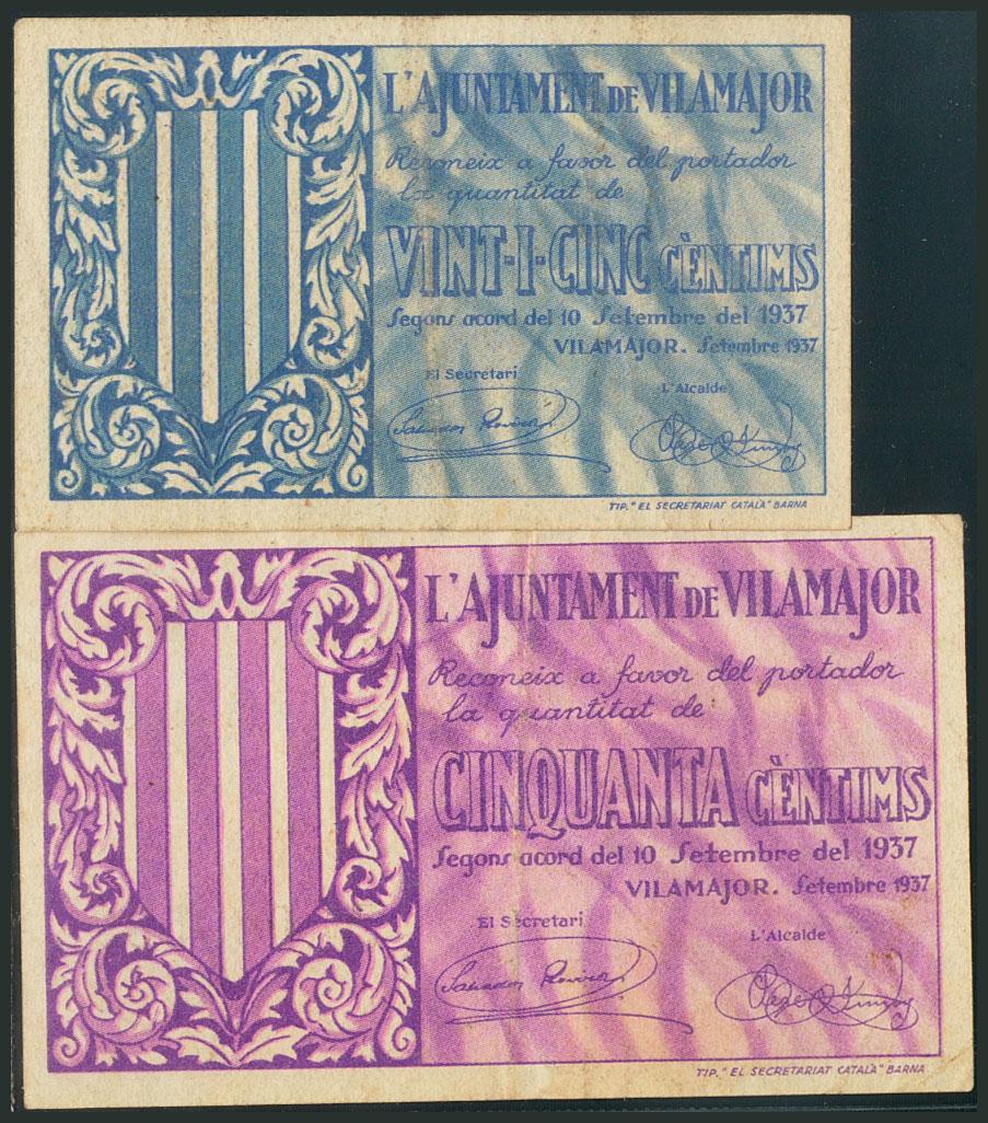 VILAMAJOR (BARCELONA). 25 Céntimos y 50 Céntimos. 10 de Septiembre de 1937. (González: 10768,10769). MBC+.