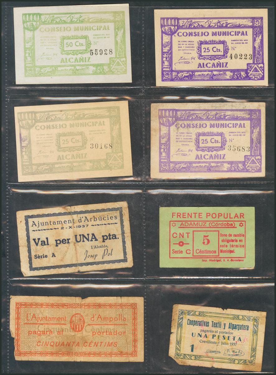 Precioso conjunto de billetes de la Guerra Civil, representadas diversas localidades, catalanas y no catalanas, se incluyen algunos billetes considerados reimpresiones. A EXAMINAR.