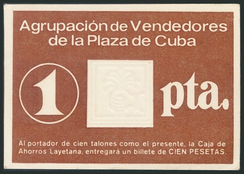 BARCELONA (1979). Vale de 1 Peseta de la Agrupación de Vendedores de la Plaza de Cuba. EBC.