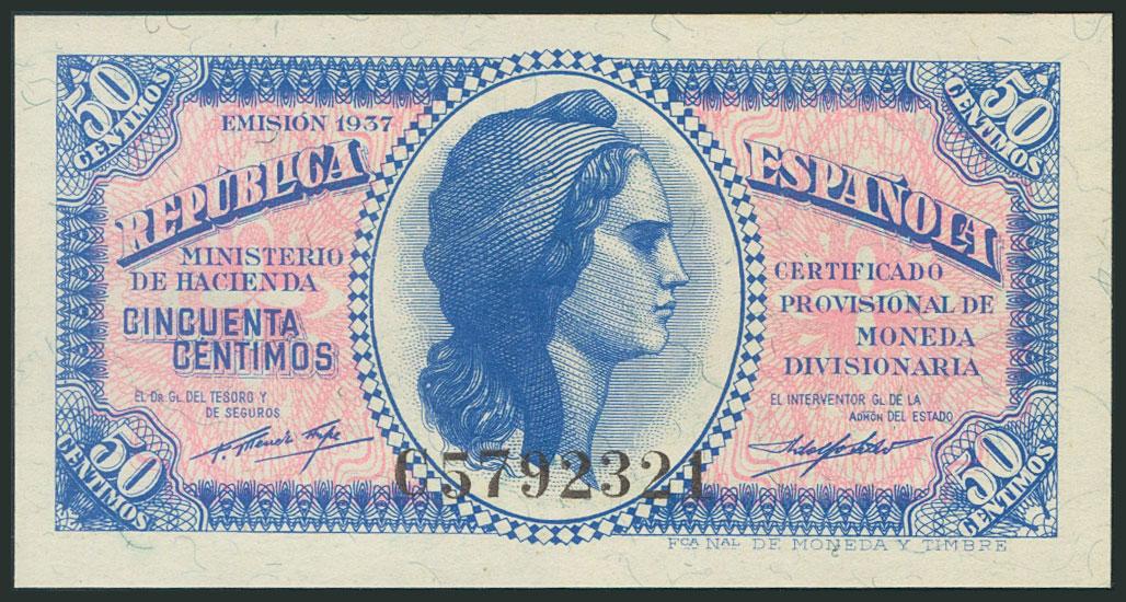 50 céntimos. 1937. Serie C, última serie emitida. (Edifil 2017: 391a). SC.