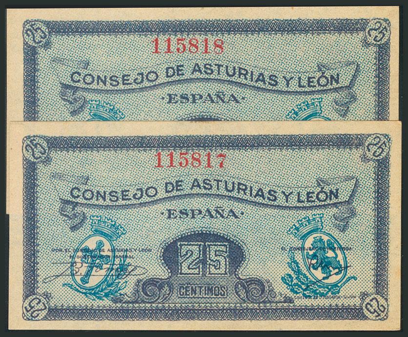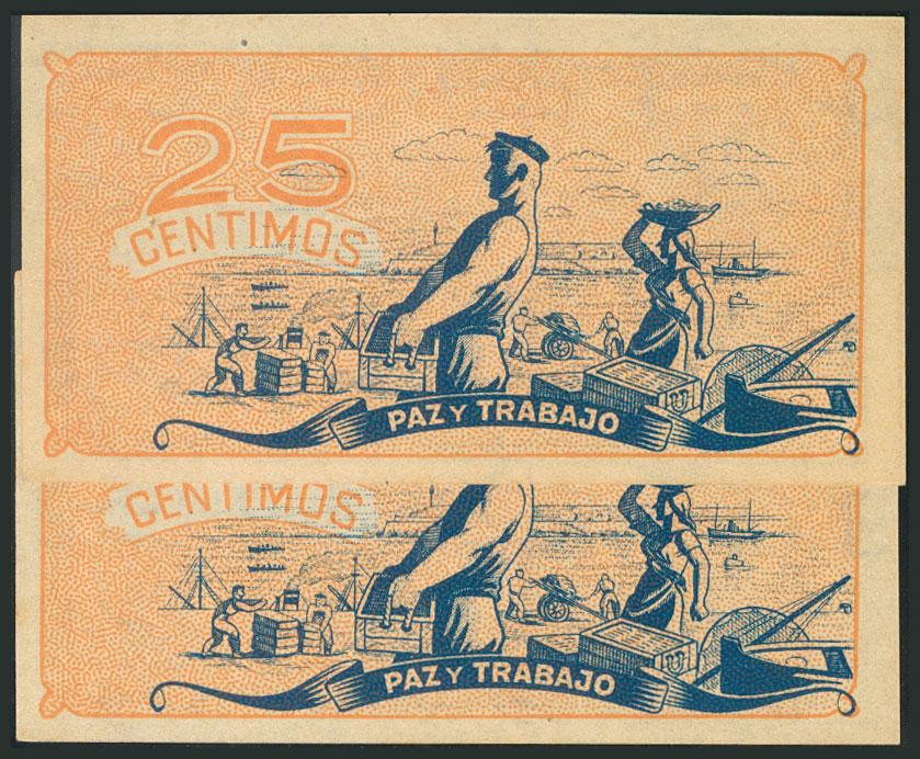 25 Centimos. 1937. Pareja correlativa. Sin serie. (Edifil 2017: 394). SC.