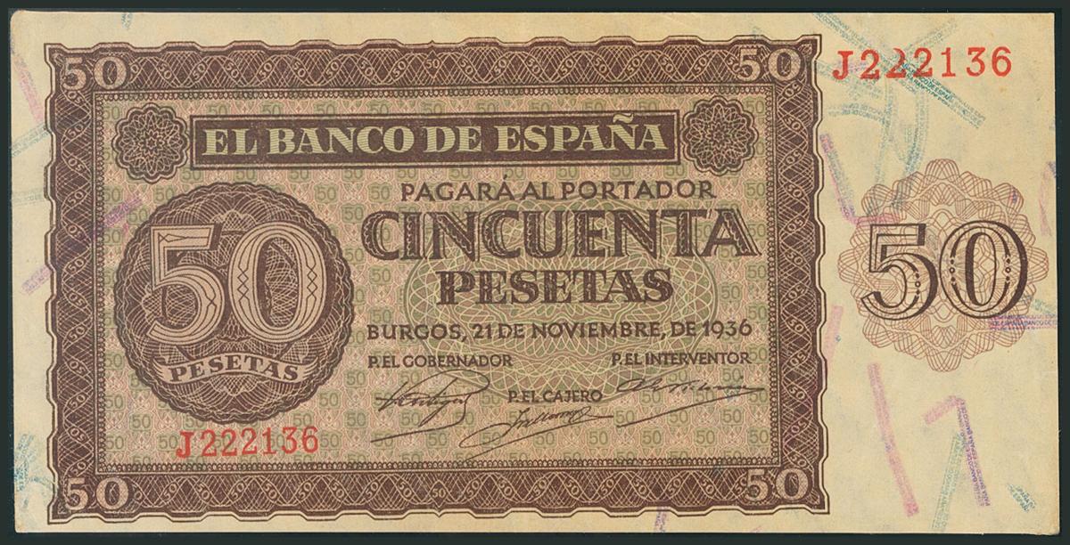 50 Pesetas. 21 de Noviembre de 1956. Serie J. (Edifil 2017: 420a). EBC.