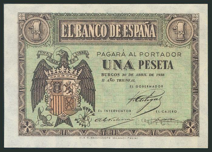1 Peseta. 30 de Abril de 1938. Serie G. (Edifil 2017: 428a). SC.