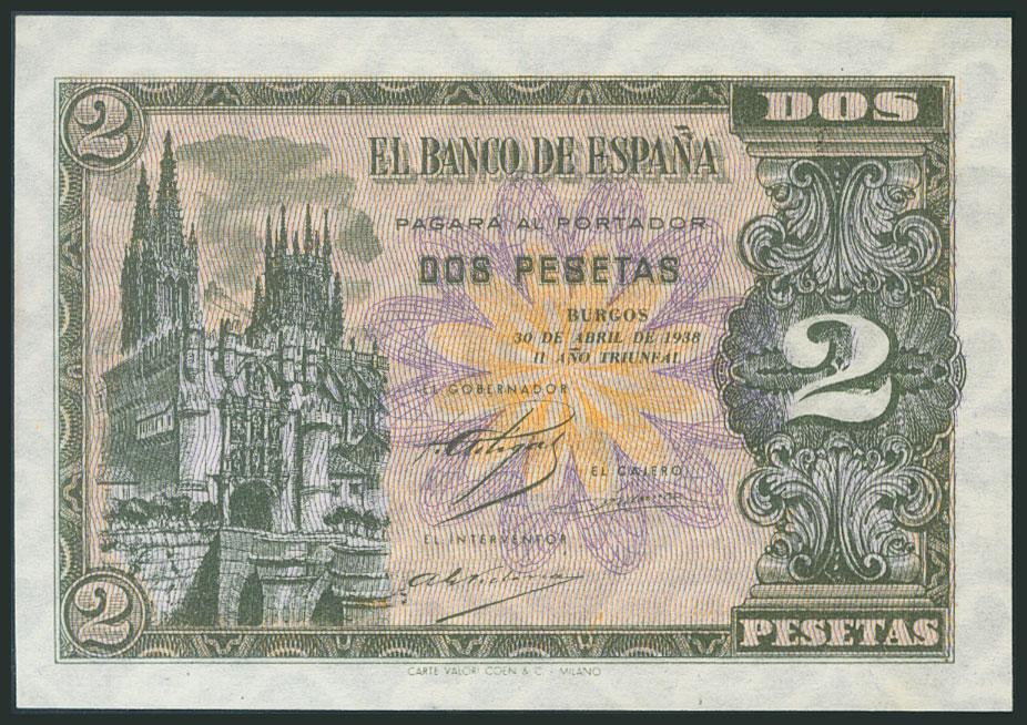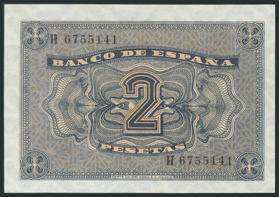 2 Pesetas. 30 de Abril de 1938. Serie H. (Edifil 2017: 429a). SC.