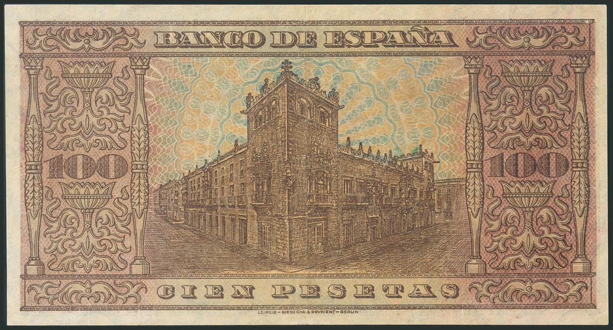 100 Pesetas. 20 de Mayo de 1938. Serie E. (Edifil 2017: 432a). Expertamente planchado en el pliegue central, dándole un aspecto espectacular y muy superior a la conservación real, con un apresto muy plano y con falta de viveza. MBC+, en su estado original