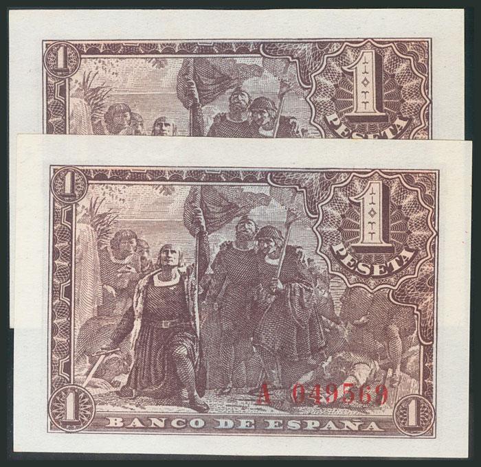 1 Peseta. 21 de Mayo de 1947. Pareja correlativa. Serie A. (Edifil 2017: 447a). SC.