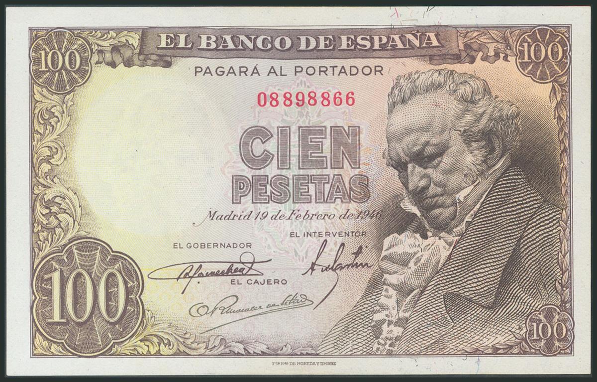 100 Pesetas. 19 de Febrero de 1946. Sin serie. (Edifil 2017: 451). Conserva gran parte del apresto original. EBC+.