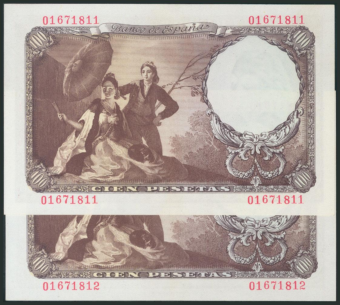 100 Pesetas. 19 de Febrero de 1946. Pareja correlativa. Sin serie. (Edifil 2017: 451). SC.