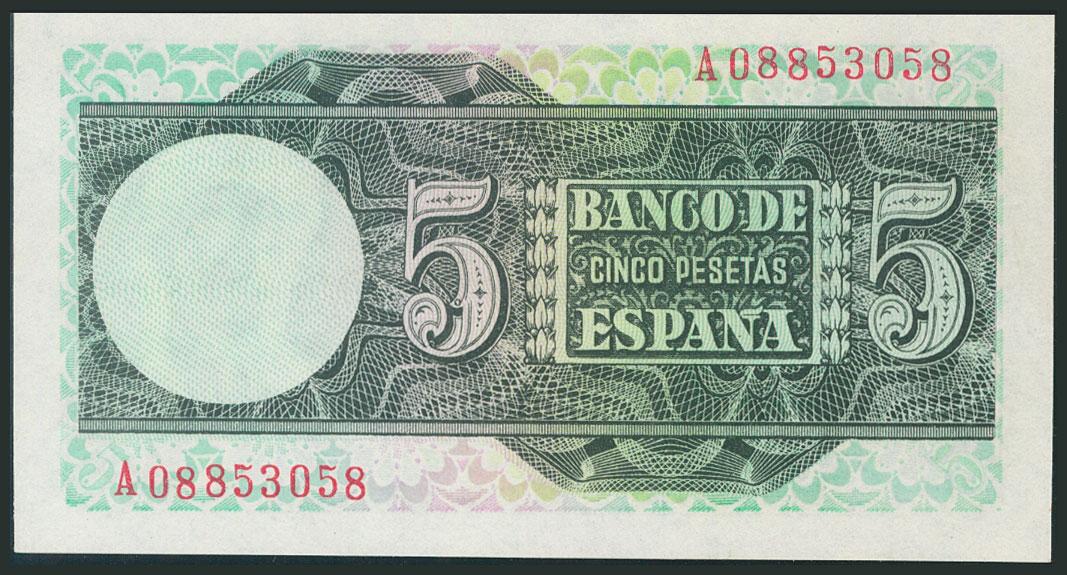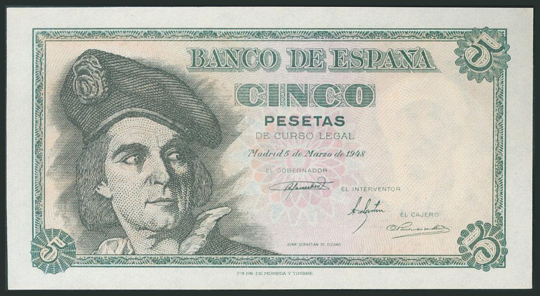 5 Pesetas. 15 de Marzo de 1948. Serie A. (Edifil 2017: 455a). SC.