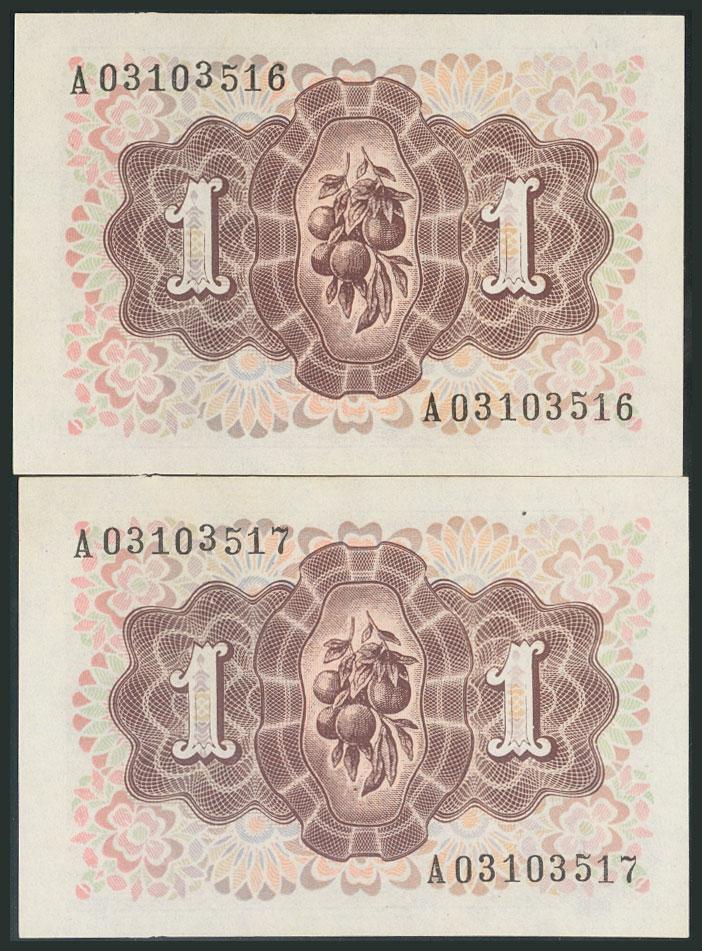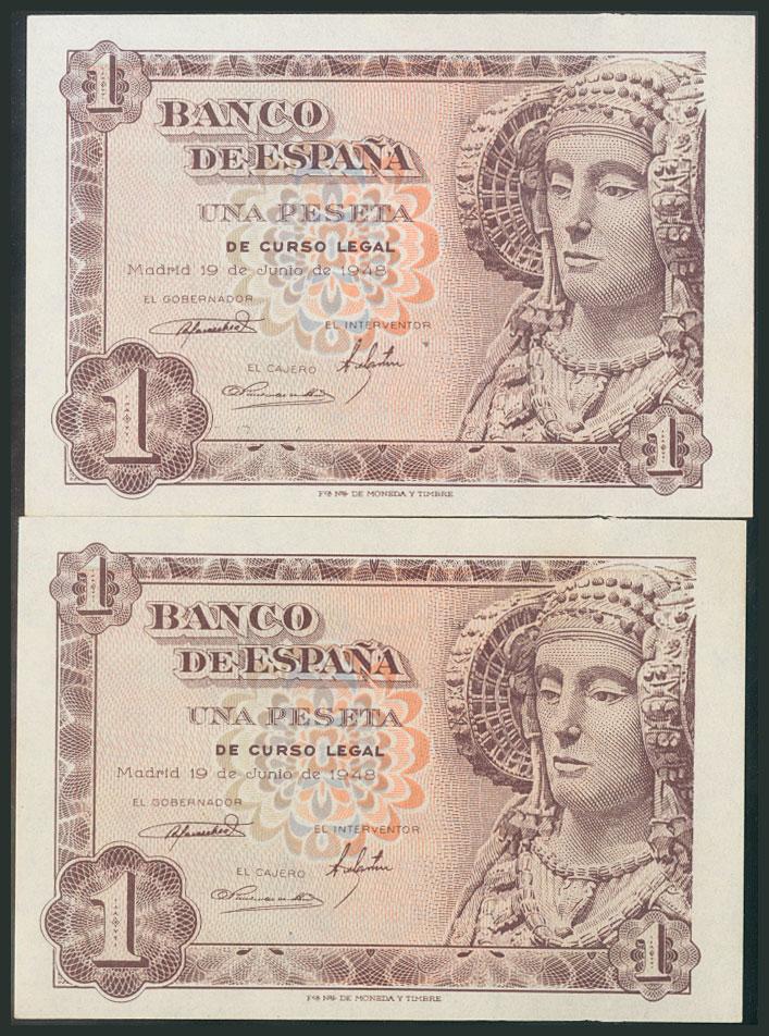 1 Peseta. 19 de Junio de 1948. Pareja correlativa. Serie A. (Edifil 2017: 457a). SC.