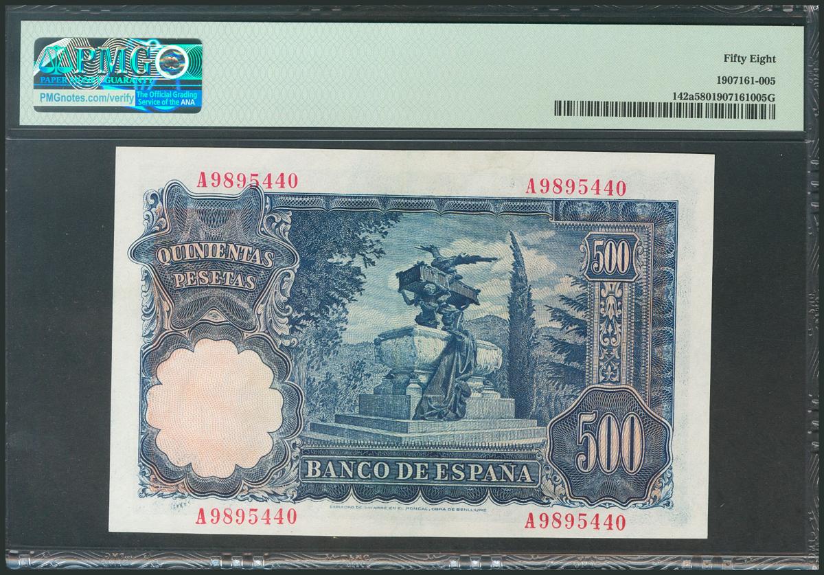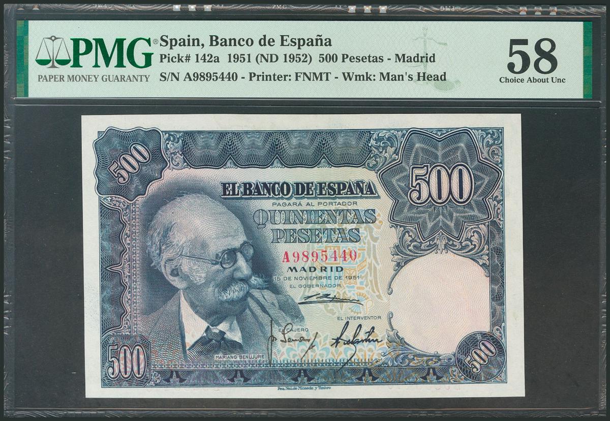 500 Pesetas. 15 de Noviembre de 1951. Serie B. (Edifil 2017: 460a). EBC+. Encapsulado PMG58.