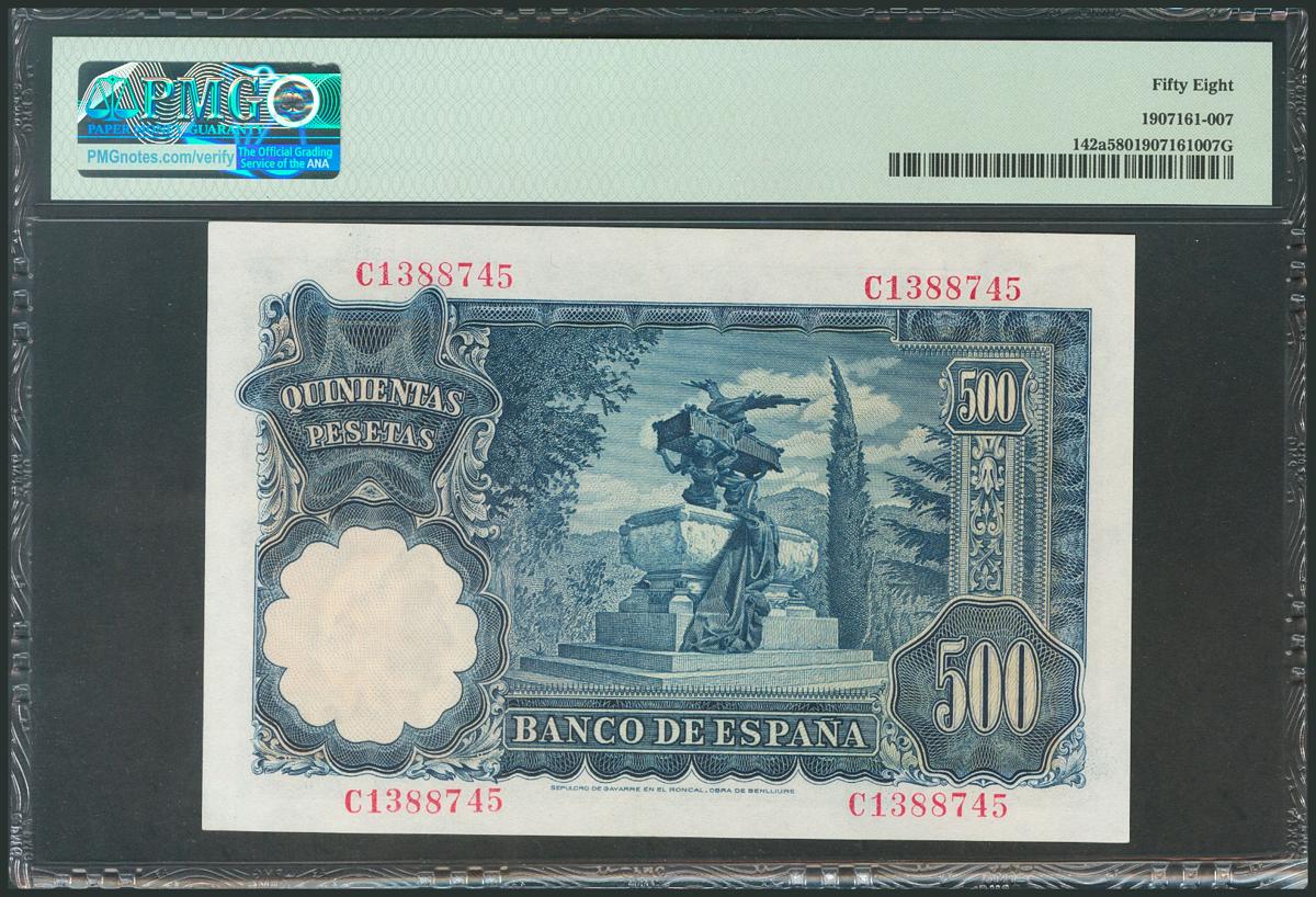 500 Pesetas. 15 de Noviembre de 1951. Serie C, última serie emitida. (Edifil 2017: 460a). EBC+. Encapsulado PMG58.