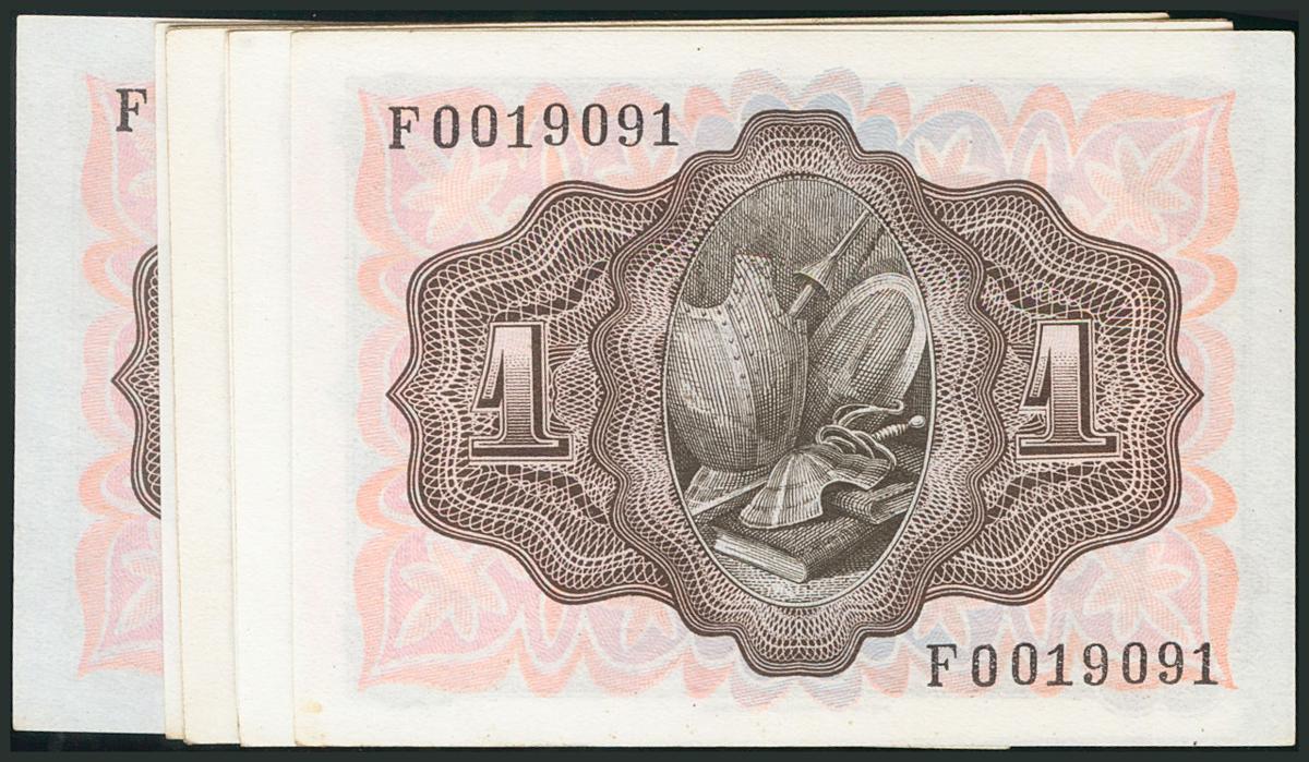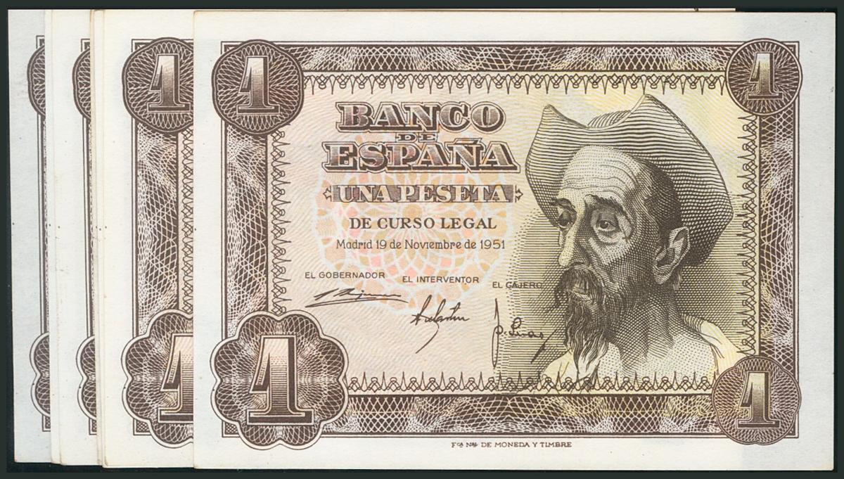 Conjunto de 8 billetes correlativos emitidos el 19 de Noviembre de 1951 y con la serie F (Edifil 2017: 461a). SC/SC-.