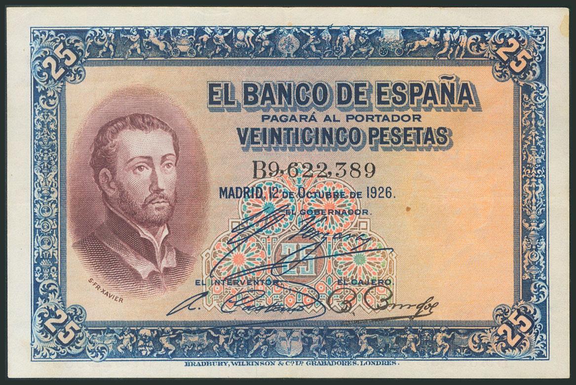 25 Pesetas. 12 de Octubre de 1926. Serie B. (Edifil 2017: 325a). MBC+.