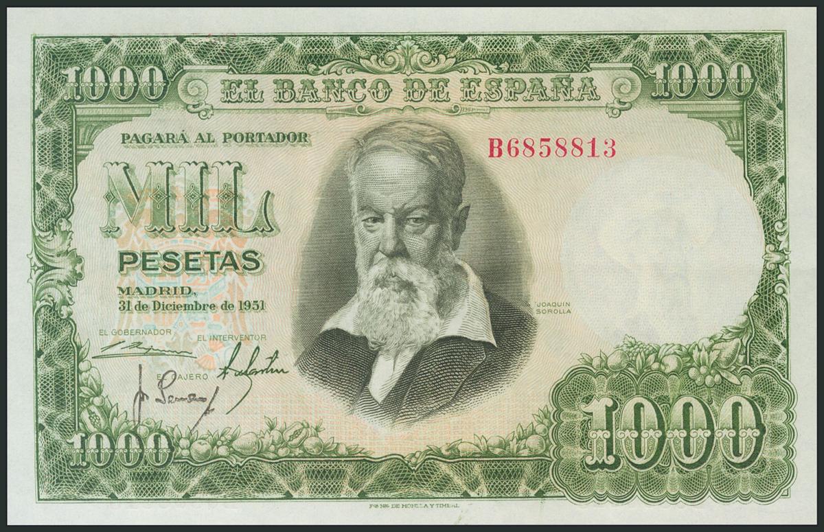 1000 Pesetas. 31 de Diciembre de 1951. Serie B. (Edifil 2017: 463a). Conserva todo su apresto original. EBC+.