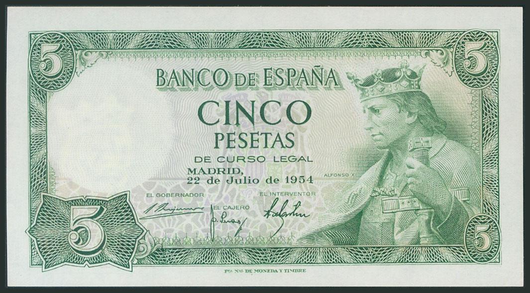 5 Pesetas. 22 de Julio de 1954. Serie M. (Edifil 2017: 466a). SC-.