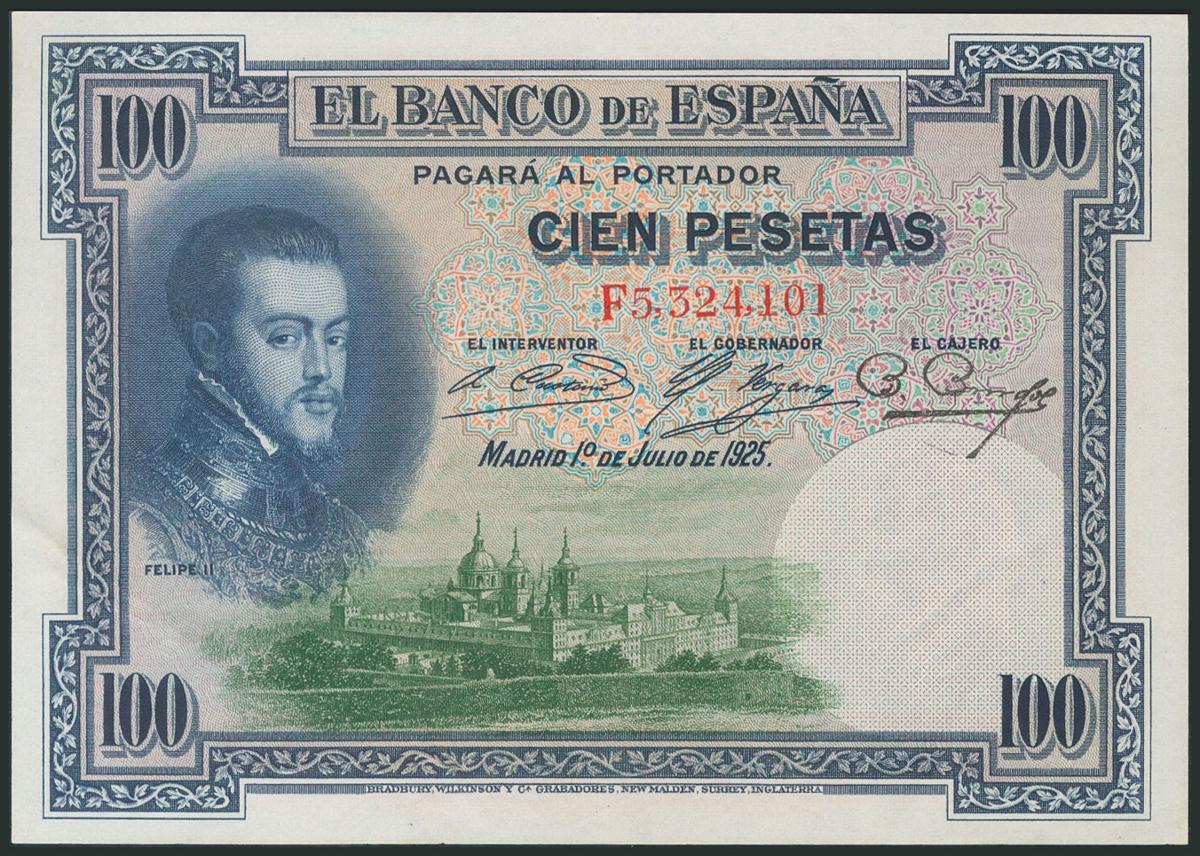 100 Pesetas. 1 de Julio de 1925. Serie F. (Edifil 2017: 350). Apresto original. EBC+.