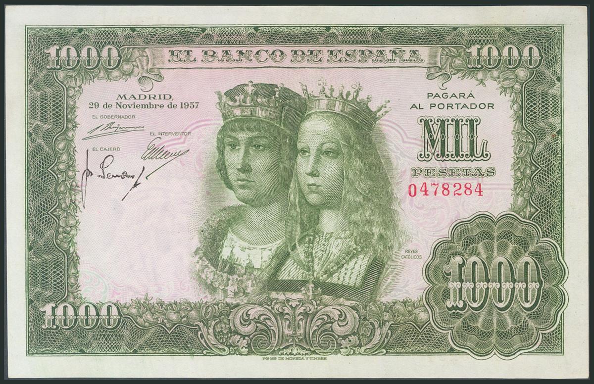 1000 Pesetas. 29 de Noviembre de 1957. Sin serie. (Edifil 2017: 469). Conserva todo su apresto original. EBC+.