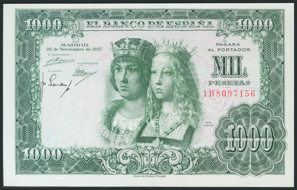 1000 Pesetas. 29 de Noviembre de 1957. Serie 1B. (Edifil 2017: 469b). Apresto original. SC.