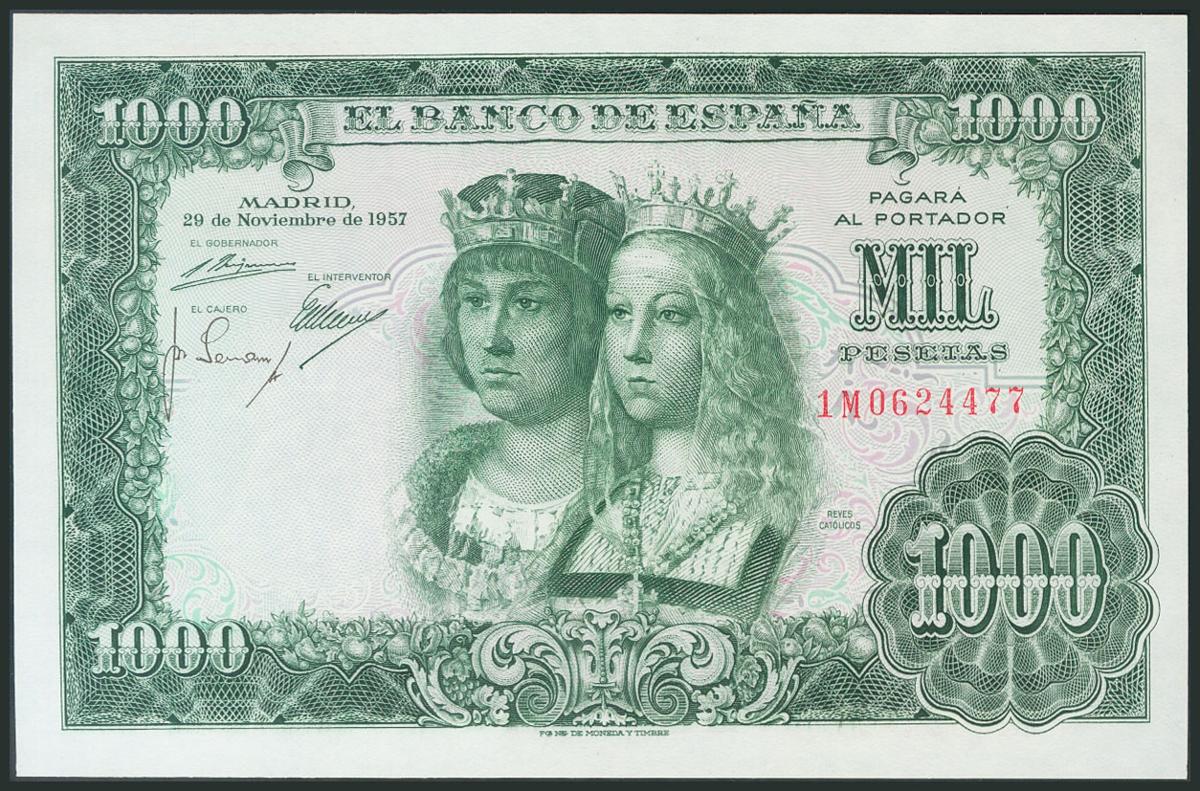 1000 Pesetas. 29 de Noviembre de 1957. Serie 1M. (Edifil 2017: 469b). SC.