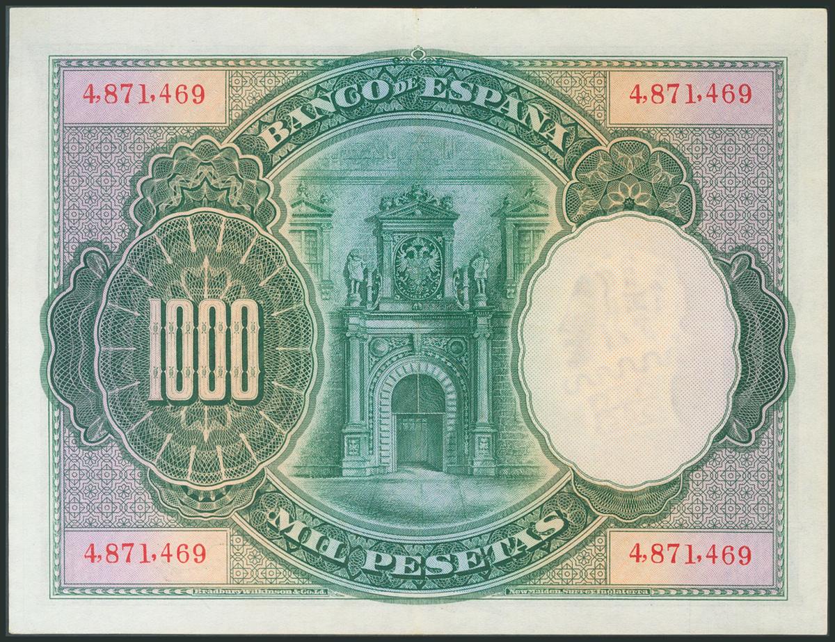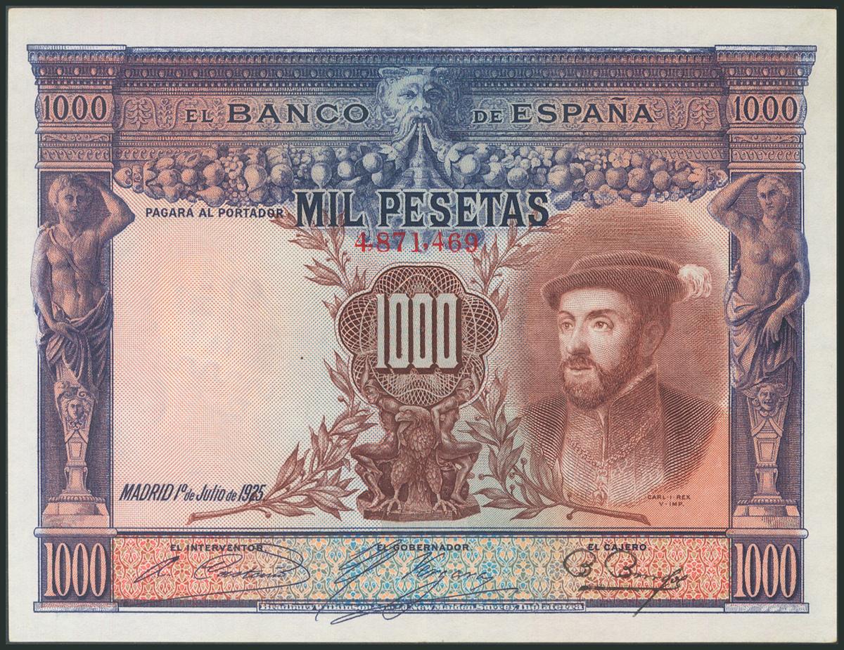 1000 Pesetas. 1 de Julio de 1925. Sin serie. (Edifil 2017: 351). Conserva parte del apresto original. EBC-.