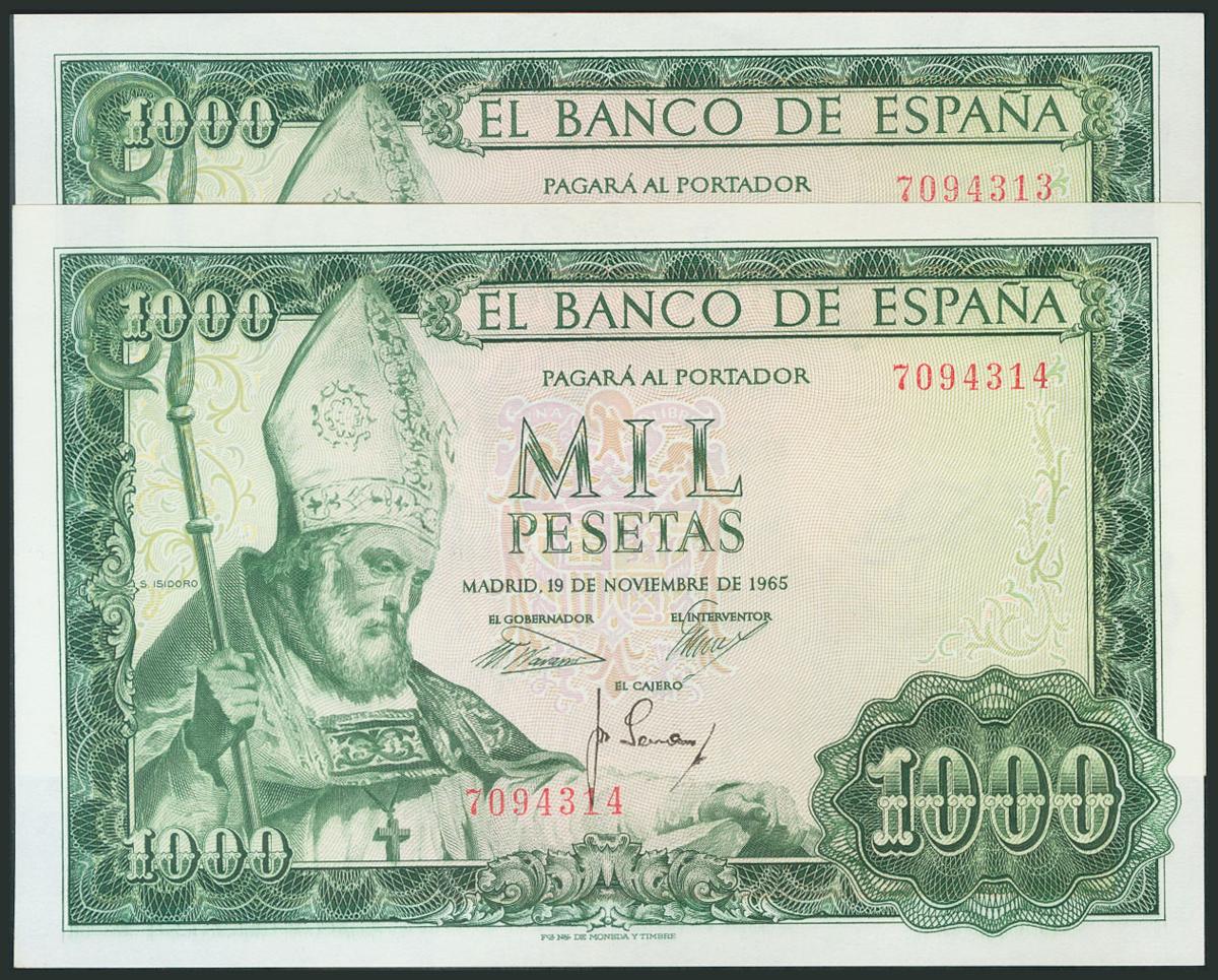 1000 Pesetas. 19 de Noviembre de 1965. Pareja correlativa. Sin serie. (Edifil 2017: 471). SC-.