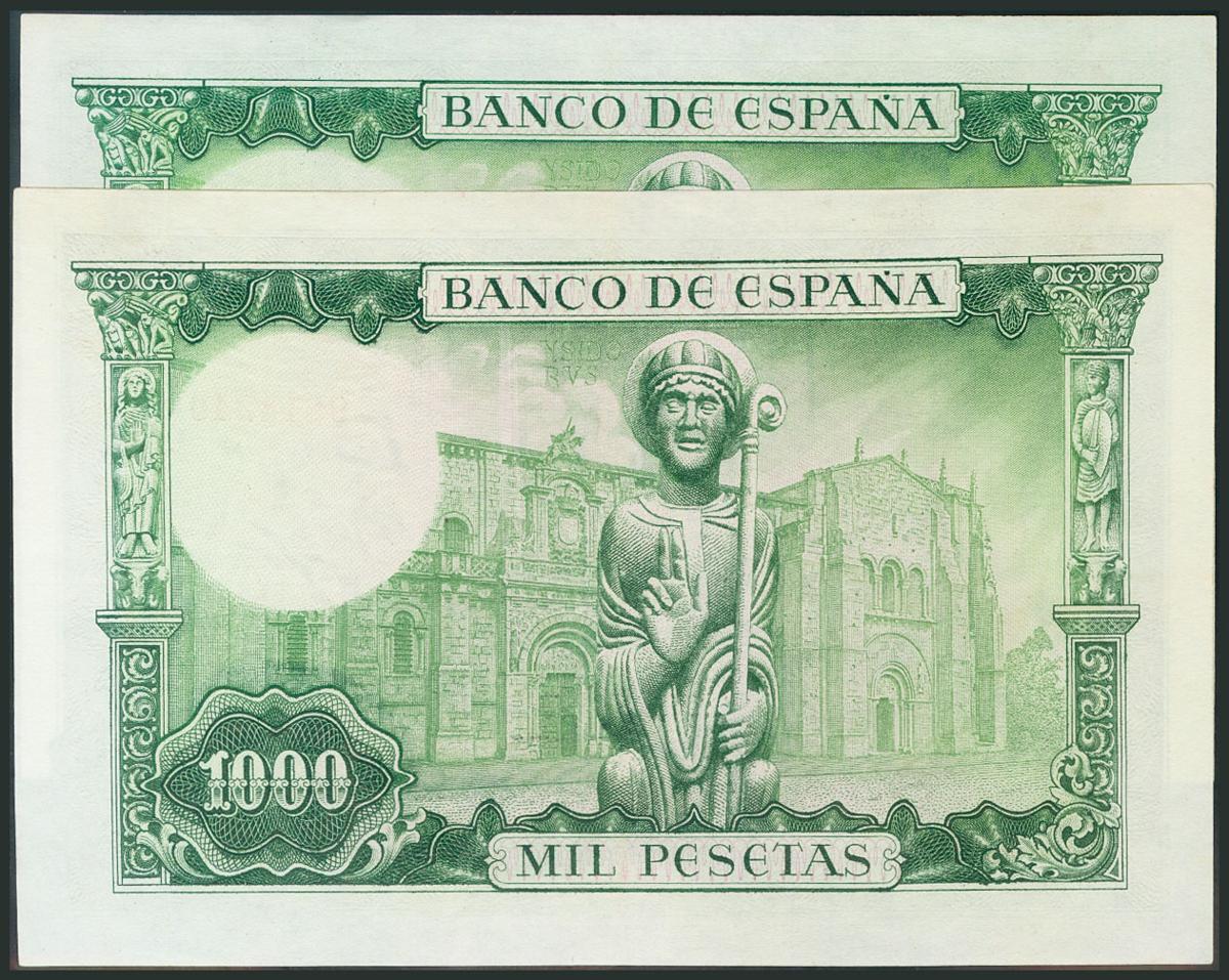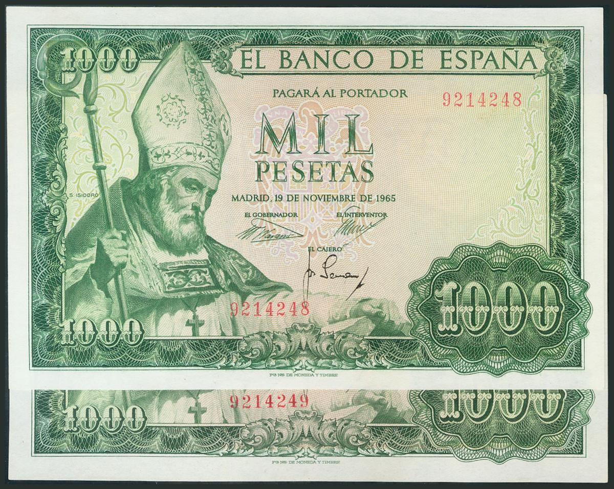 1000 Pesetas. 19 de Noviembre de 1965. Pareja correlativa. Sin serie. (Edifil 2017: 471). EBC.