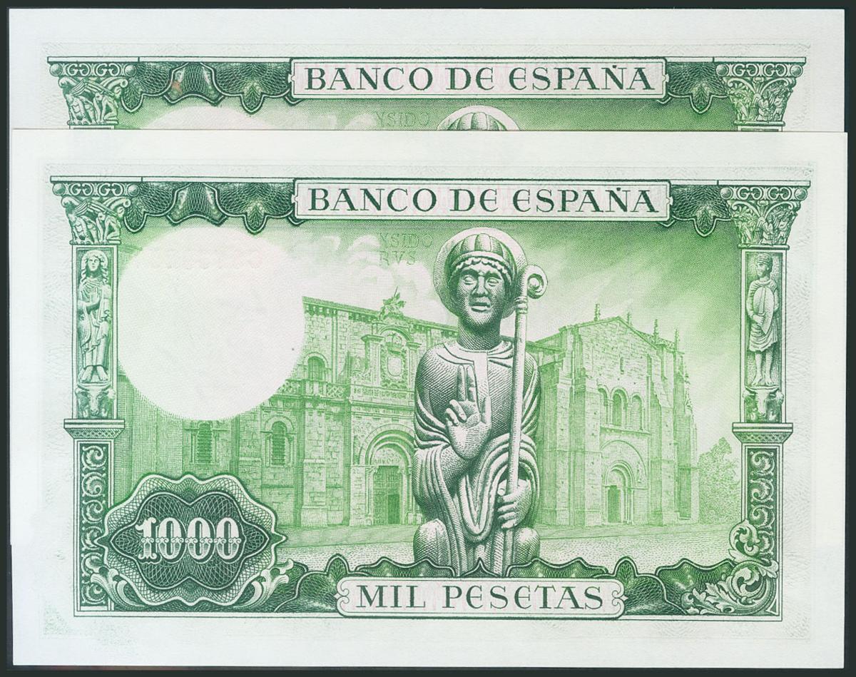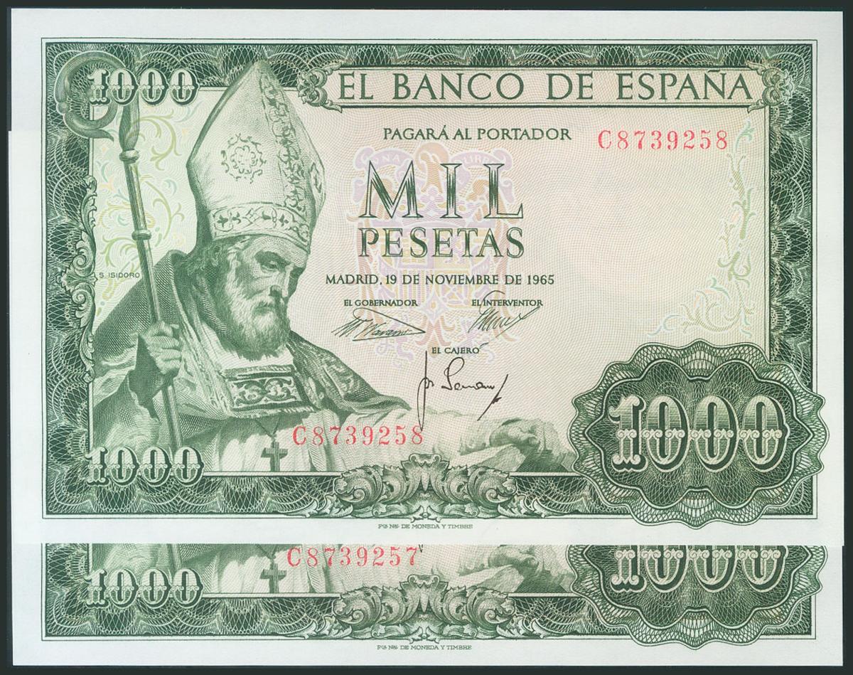 1000 Pesetas. 19 de Noviembre de 1965. Pareja correlativa. Serie C. (Edifil 2017: 471b). Apresto original. SC.